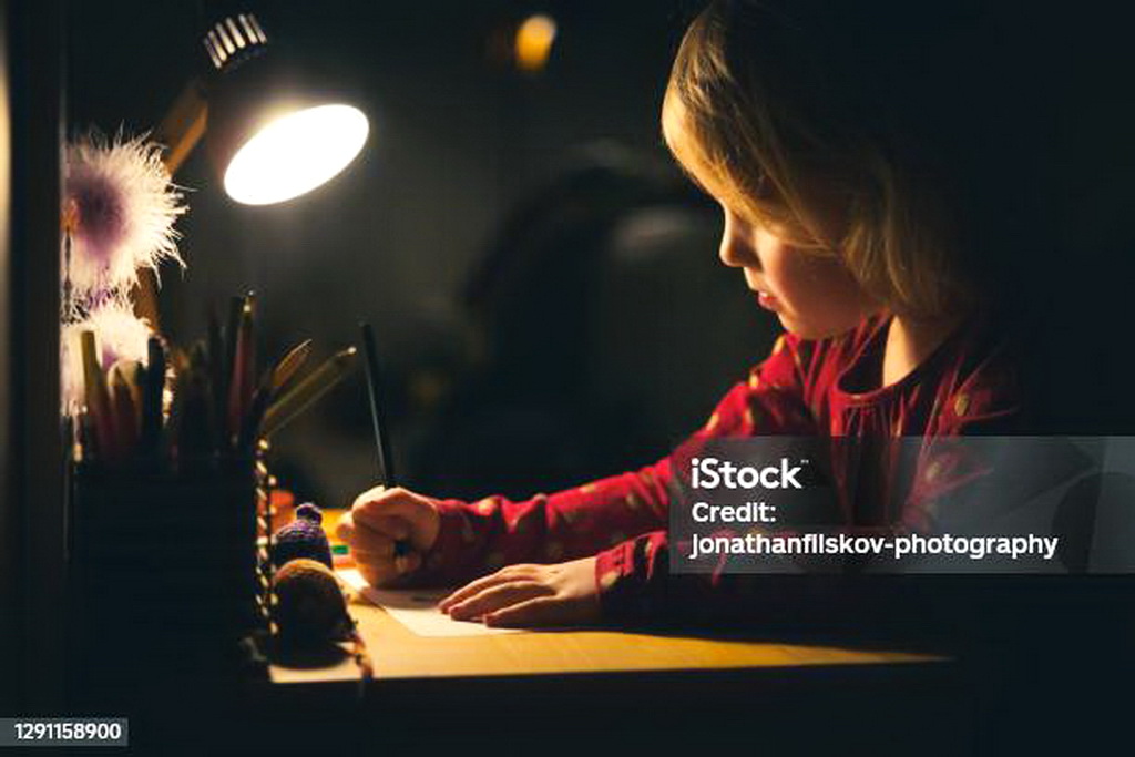 Девочка рисует дома,